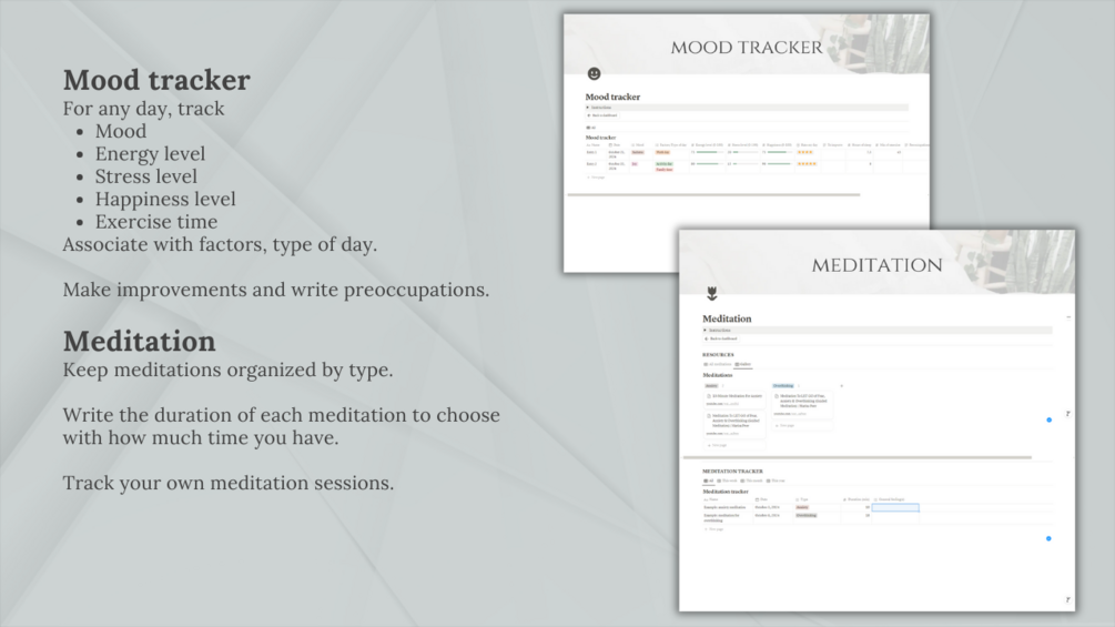 • 🧘 Meditation: Track your meditation practice to improve mindfulness.
